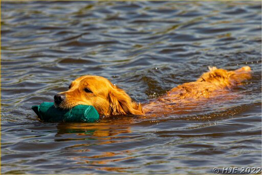 Der knapp 2,5 Jahre alte Golden Rüde zeigt sich während des gesamten Testverlaufs ausgeglichen und freundlich gegenüber Menschen, ausgeprägt zeigt er Beute-, Such- und Trageverhalten, den Parcours durchläuft er sicher und selbständig.